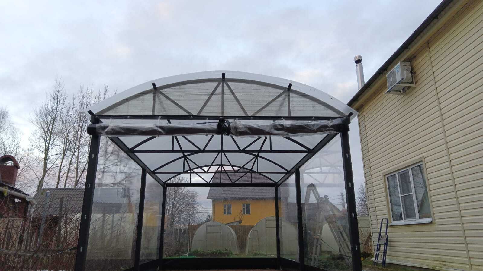 Самый популярный выбор для современных навесов: лёгкий, визуально воздушный и хорошо работает в проектах с большими пролётами.